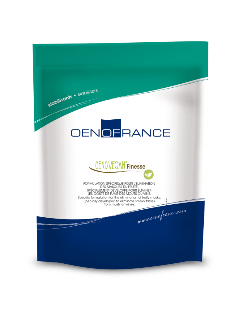 - OENOVEGAN® FINESSE entfernt Fehltöne (animalische Noten, Pharmazietöne, Geruch nach fauligem Wasser, etc.), die infolge des Wachstums bestimmter Mikroorganismen (Brettanomyces bruxellensis, etc.) auftreten.